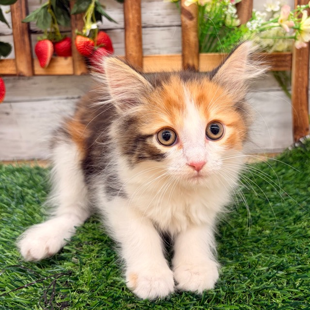 ・猫MIX(ノルウェージャンフォレストキャット×マンチカン)女の子(11/1生まれ キャリコ)