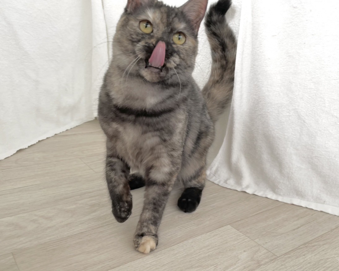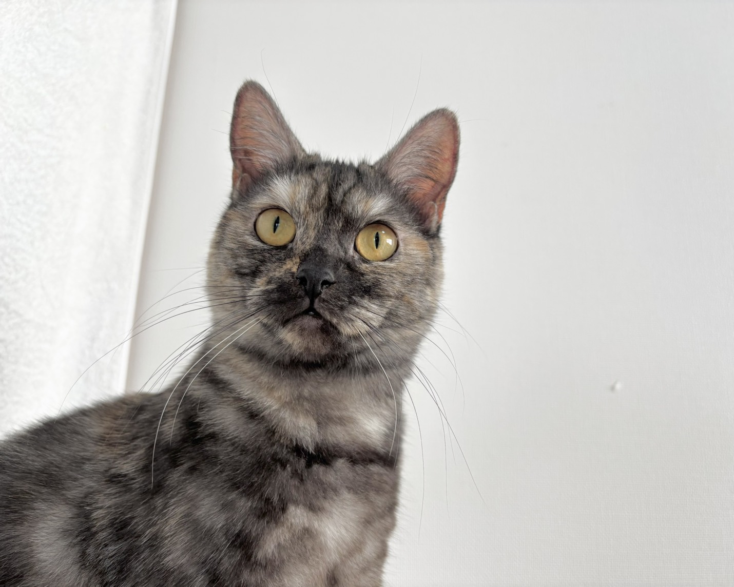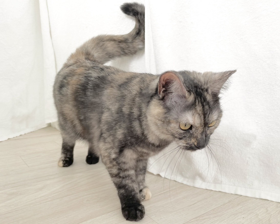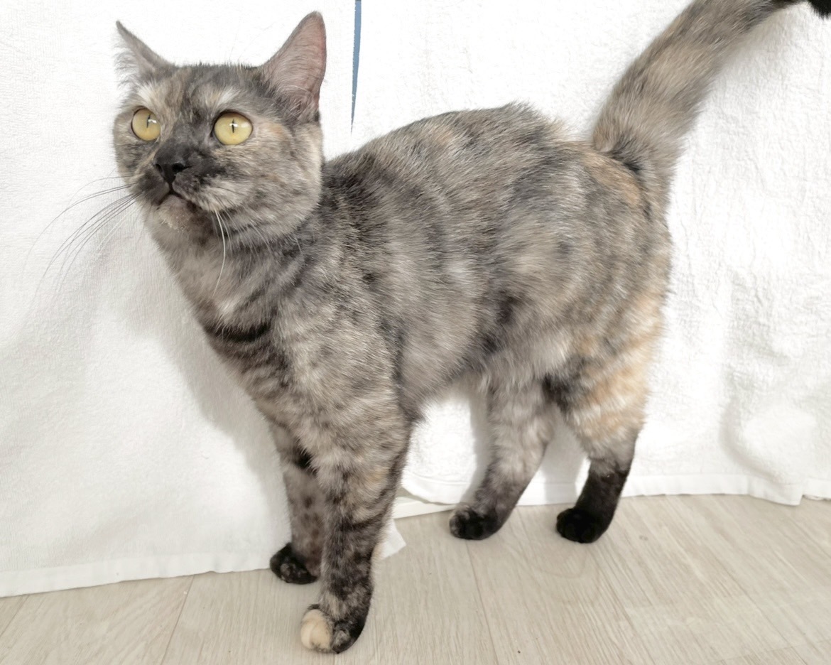 美しいトーティシェル(サビ柄)の被毛が目を惹く、マンチカンの女の子🐱💕