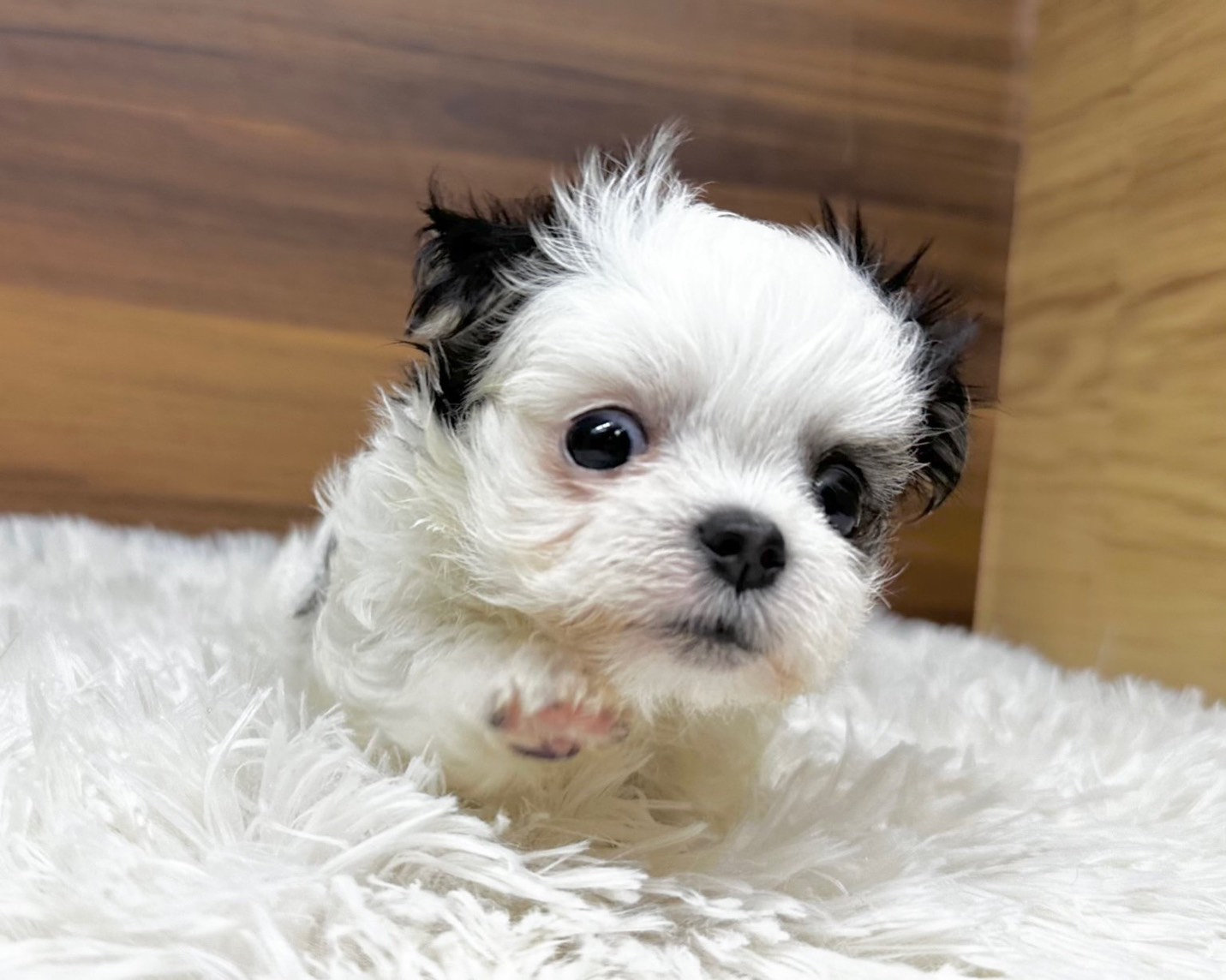 ふわふわの白い毛に、ちょこんと黒いお耳がチャームポイントのチワマルちゃん💕