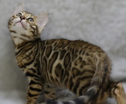 しなやかな筋肉質ボディ&太めのしっぽで、ベンガルらしいワイルドで上品なシルエット。
