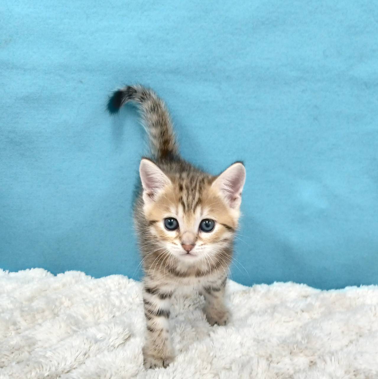 両親の種類:父:サイベリアン(ブラウンタビー&ホワイト)×母:ベンガル(ブラウンスポテッドタビー)