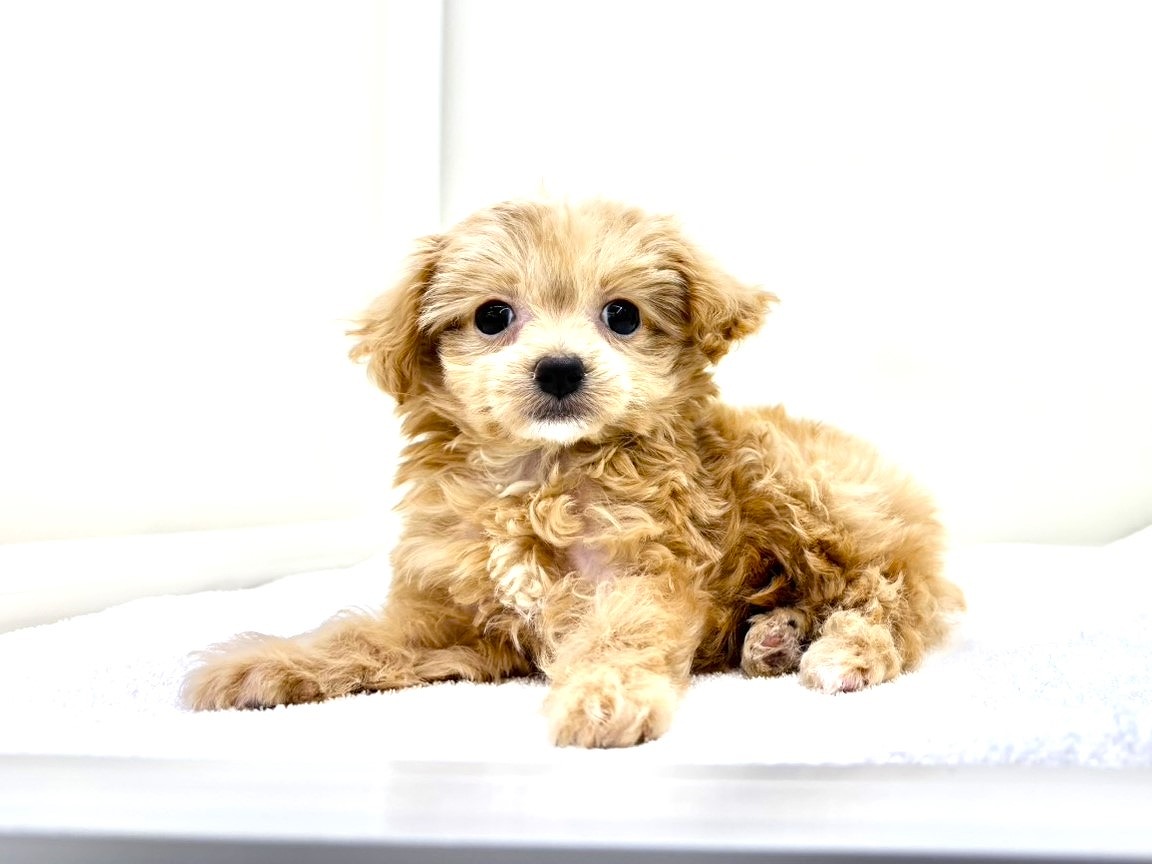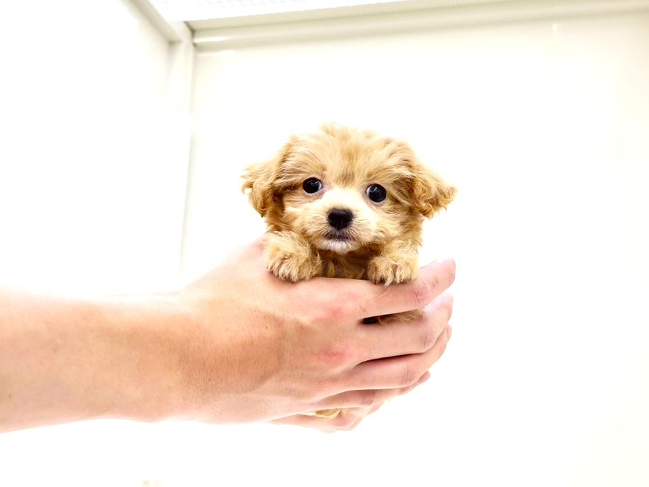 チワプーの女の子、アプリコット&ホワイトの愛らしいモコモコちゃんが仲間入りしました。