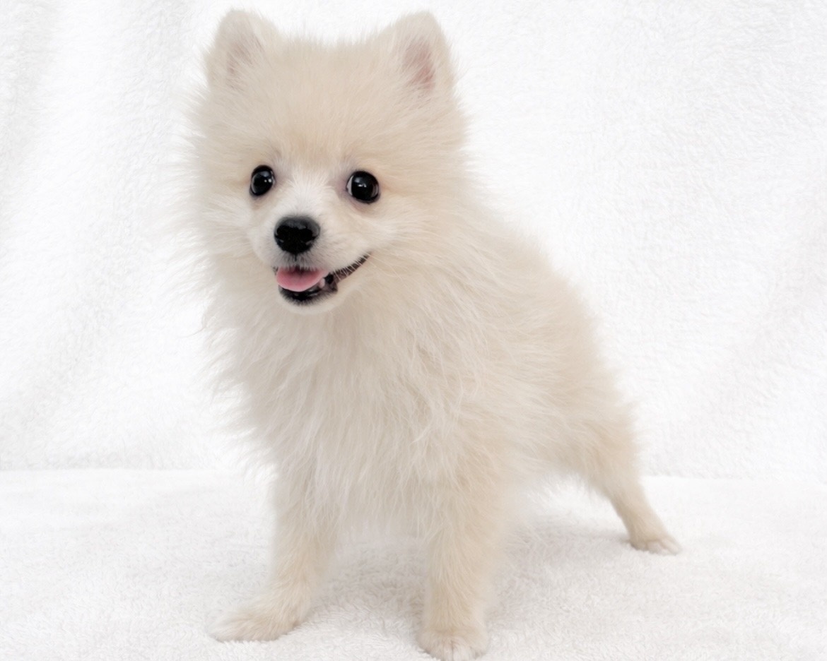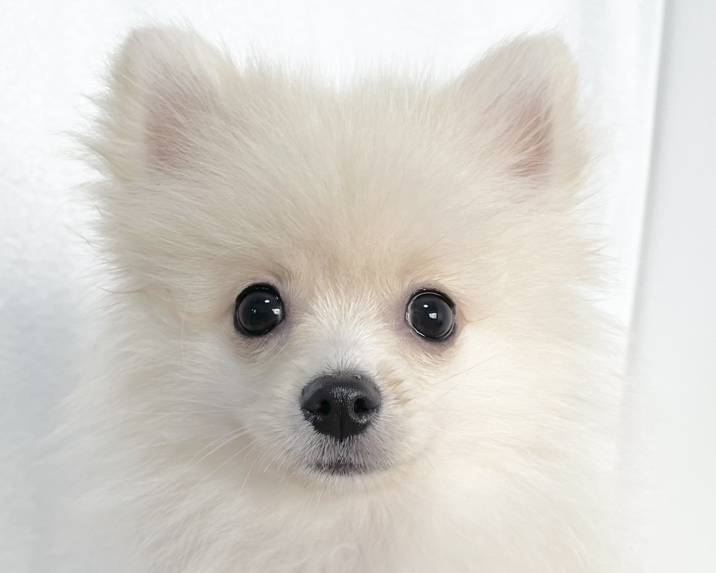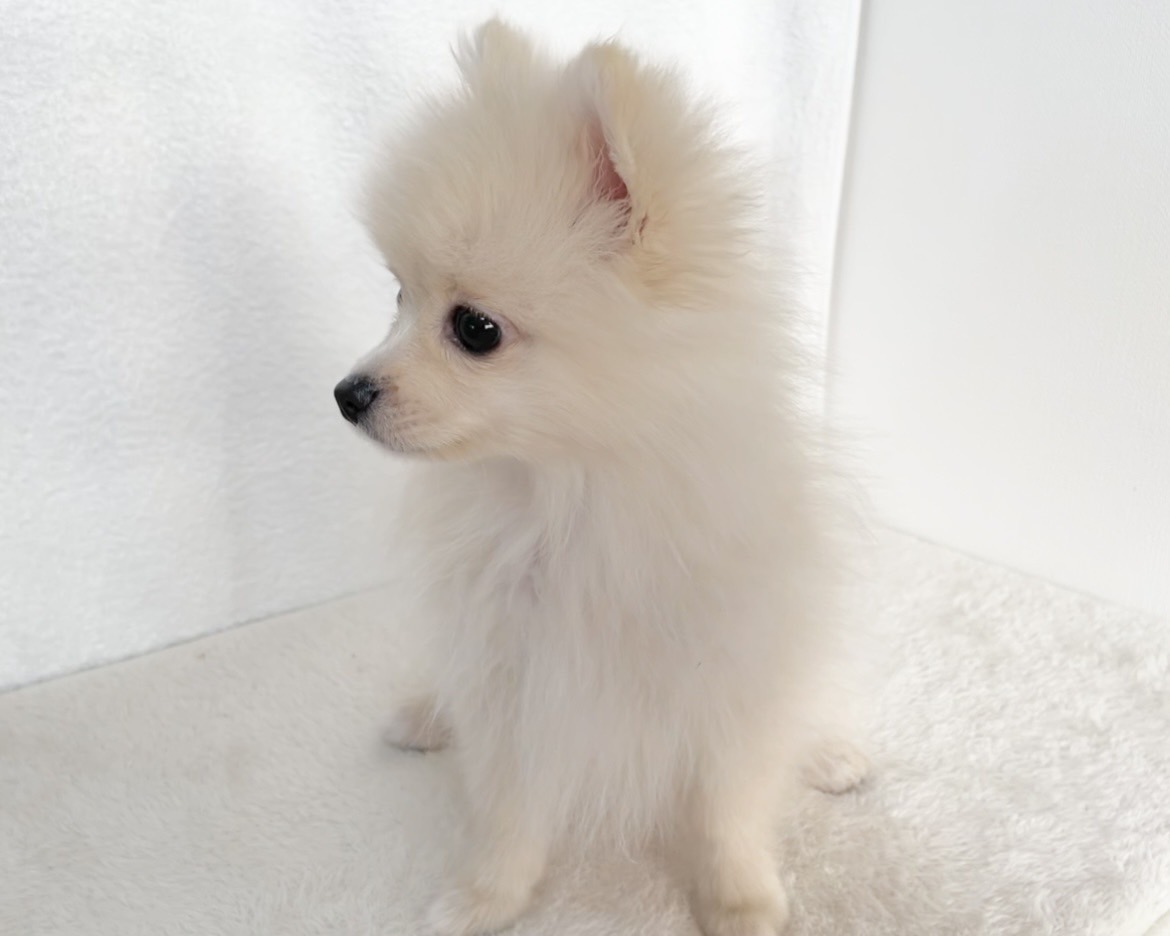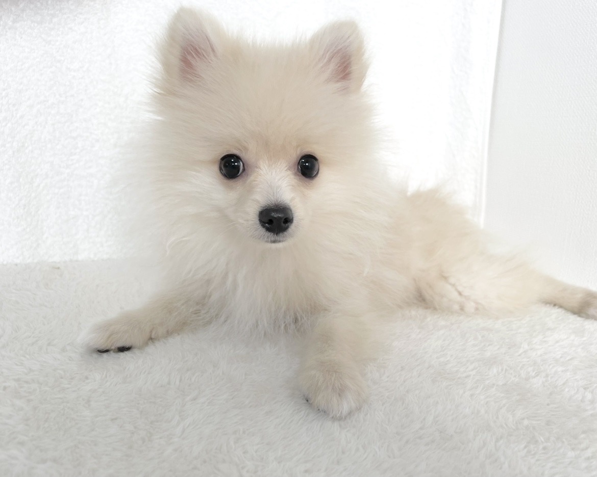ふわふわのクリームカラーがとても美しい、小さな小さなポメラニアンの男の子です。まるでぬいぐるみのような柔らかいフォルムと大きなうるうるおめめが特徴で、初対面の方でも思わず抱きしめたくなる可愛さです。