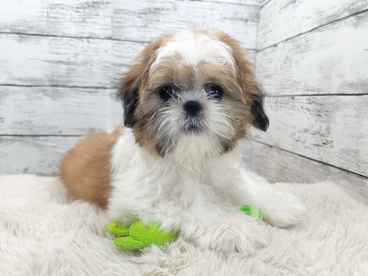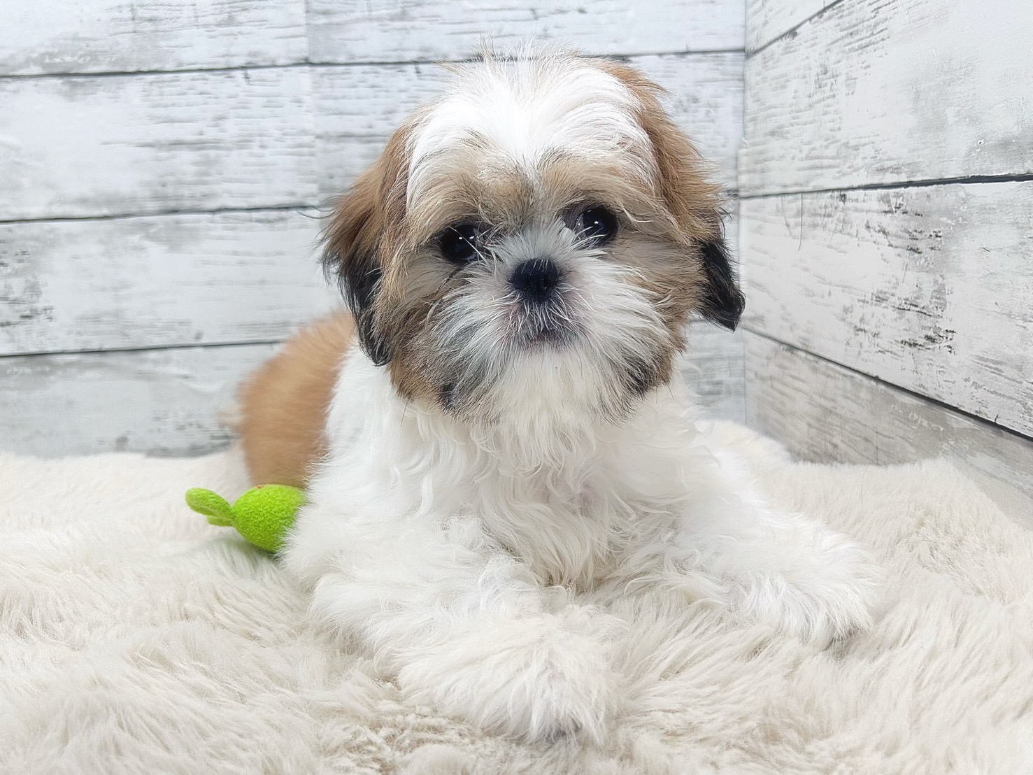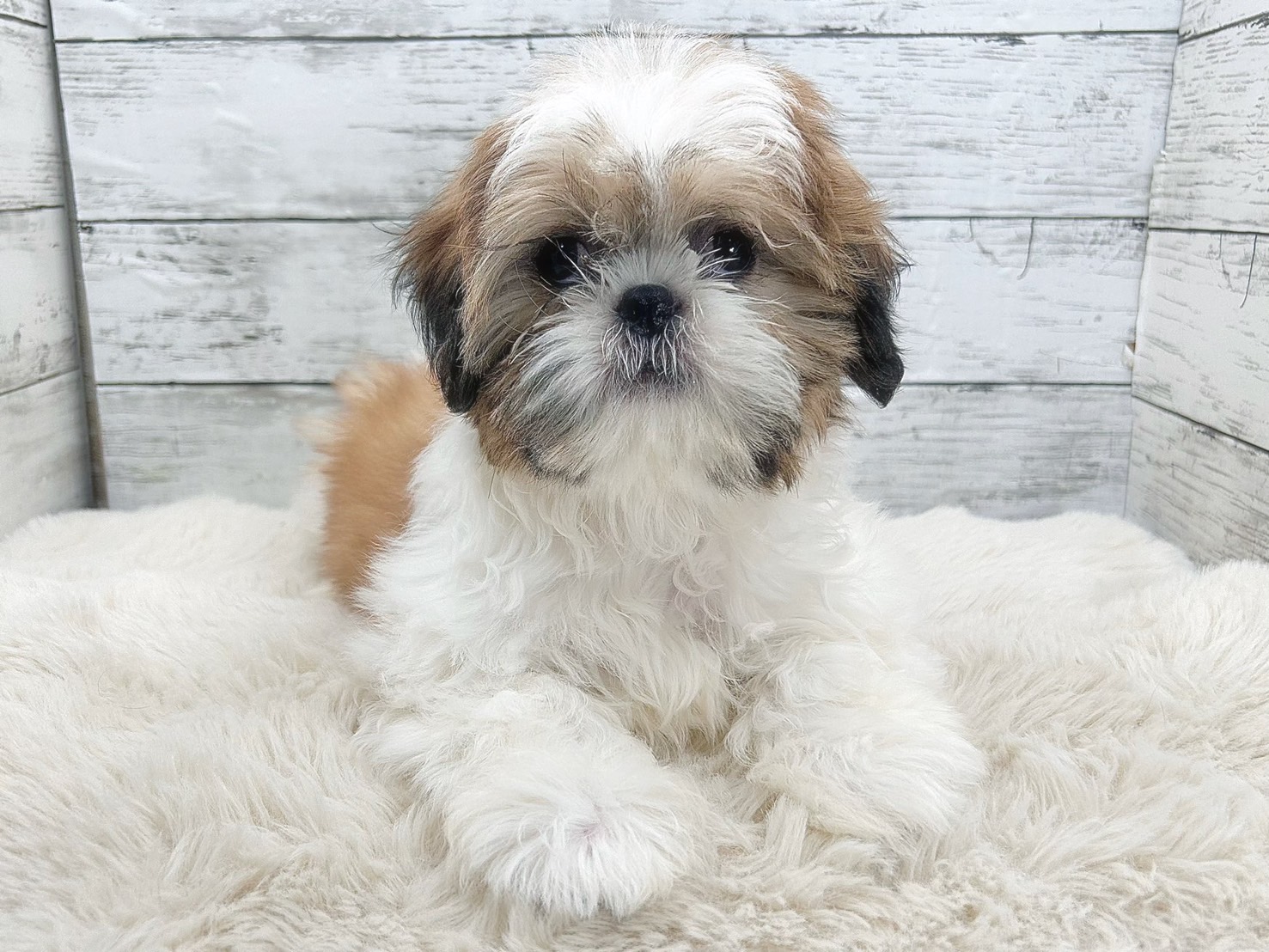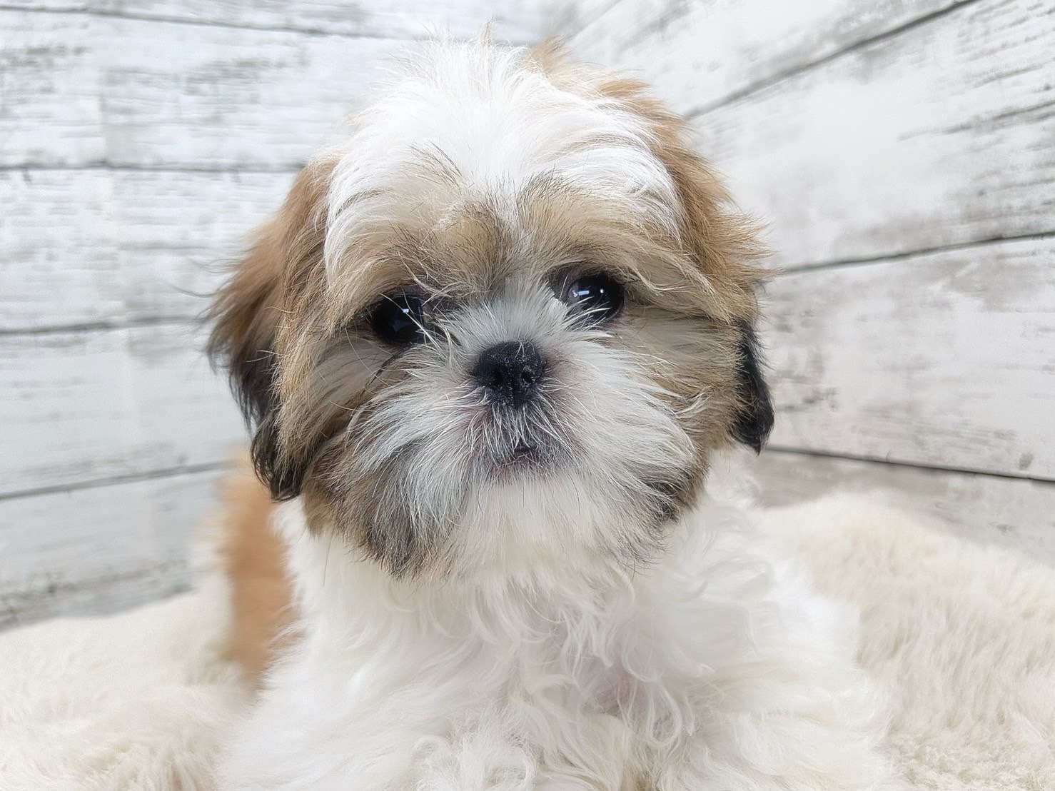 🐶✨ ぬいぐるみのような愛らしさが目を引く、シーズーの男の子です。ホワイト/ゴールドのやさしい毛色と、まんまるなお顔立ちは、見た瞬間に心をつかまれてしまう魅力があります💕
