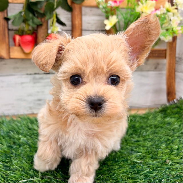 - チワワらしい大きなお目目と、プードル譲りのふわふわ被毛