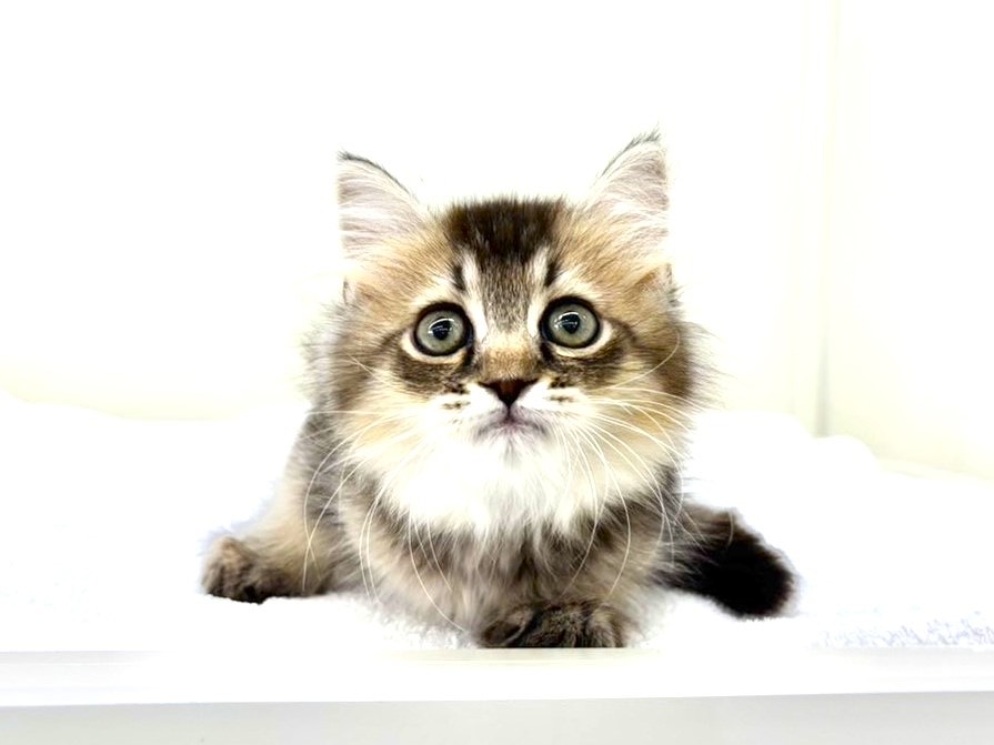 毛色はブラウンタビー。くっきりしすぎない、どこか淡くやわらかな色合いで、サイベリアンらしいふんわりとした被毛と相まって、とても穏やかな印象を与えてくれる子です。見ているだけで心が落ち着くような、不思議な安心感があります(´ω`)
