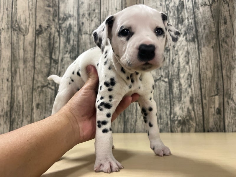 鮮やかなホワイト&ブラックの毛色が印象的なダルメシアンの女の子です。