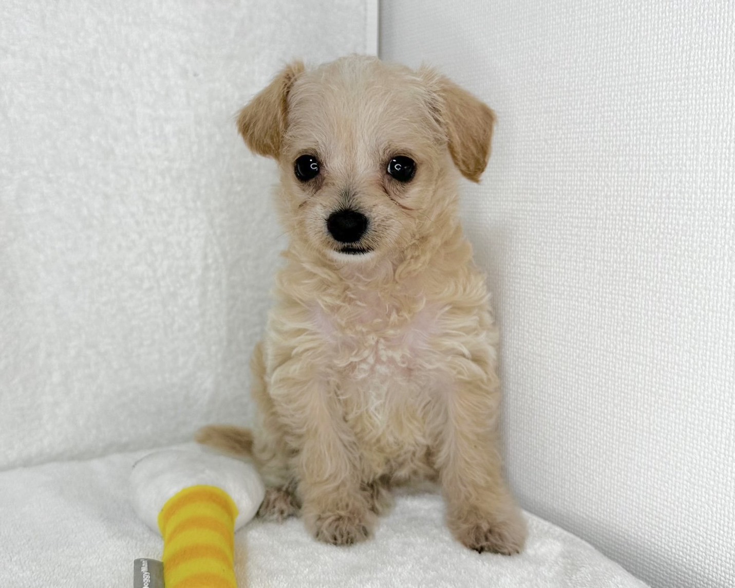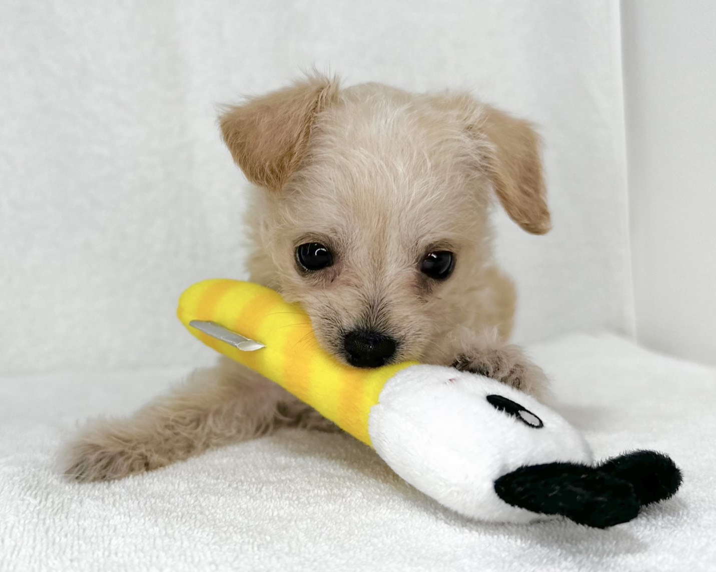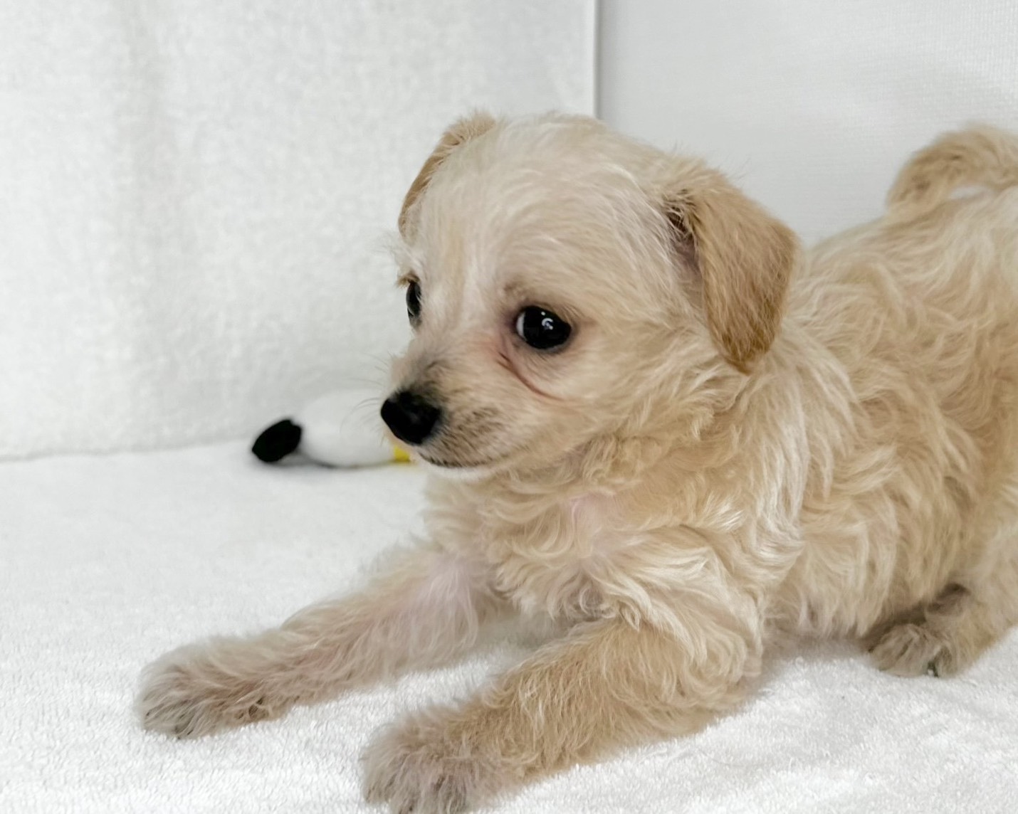 やさしいクリーム色の被毛が印象的な、チワワ×マルチーズの女の子です。