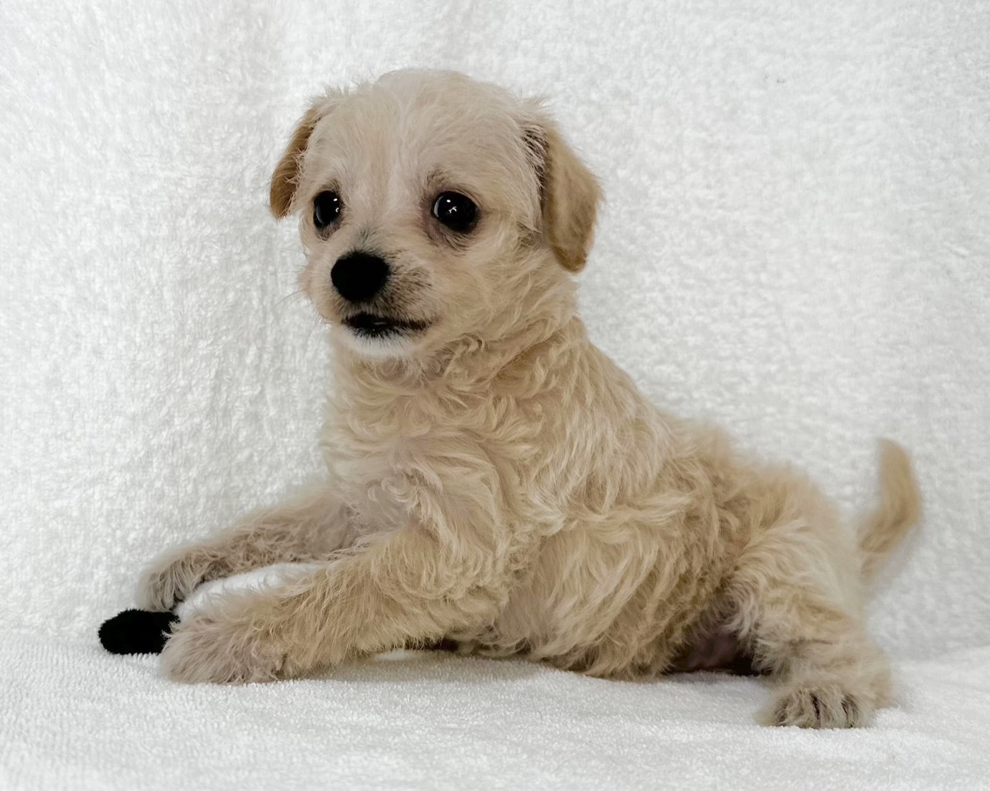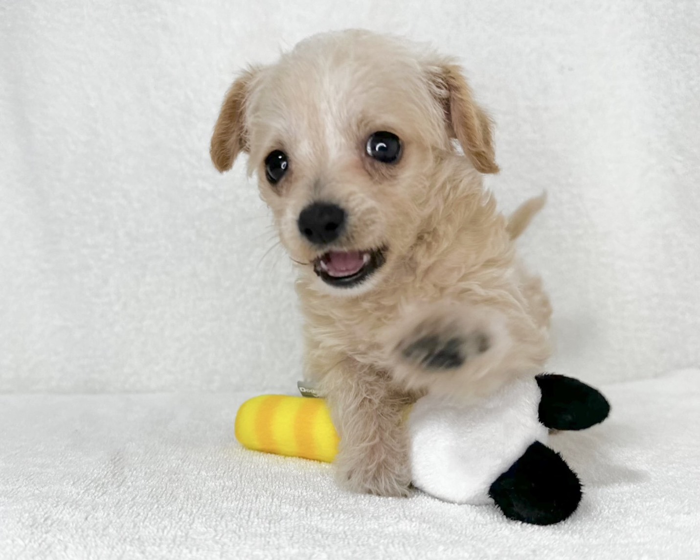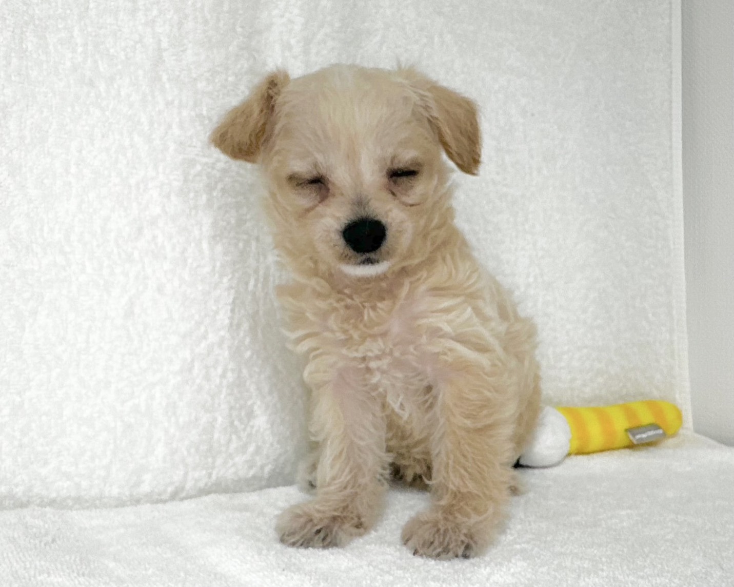 やさしいクリーム色の被毛が印象的な、チワワ×マルチーズの女の子です。