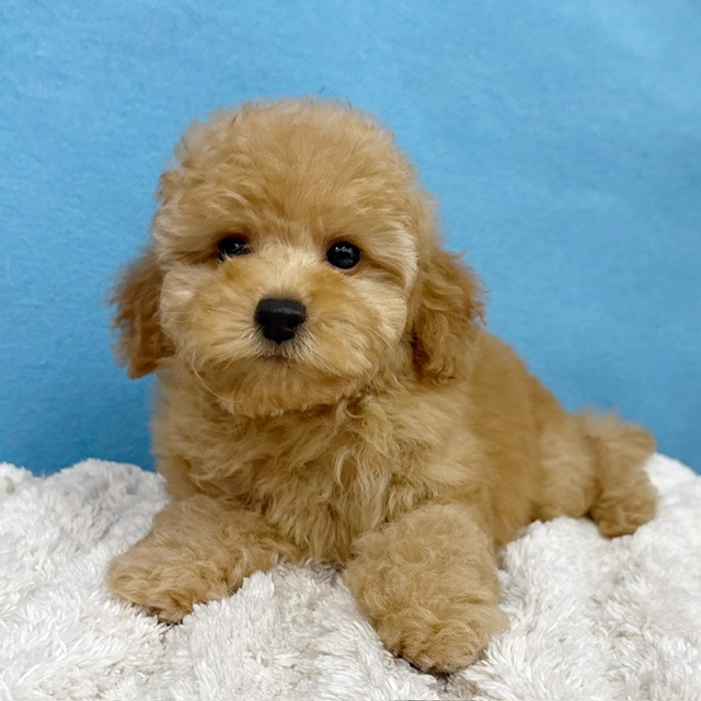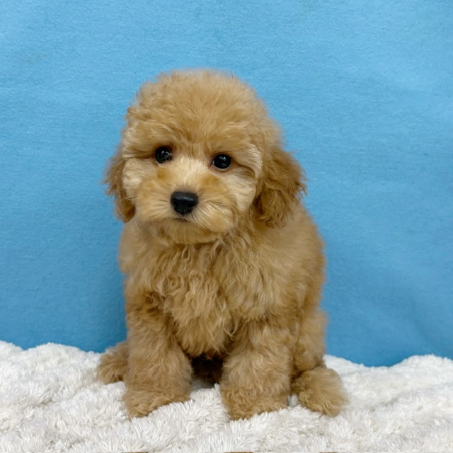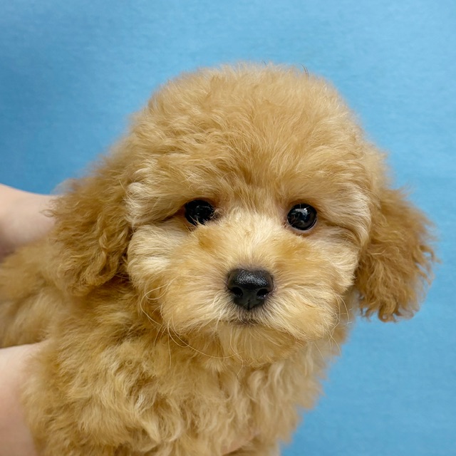 まんまるの瞳でじっと見つめてくる、ふわふわアプリコットのトイプードルくん。