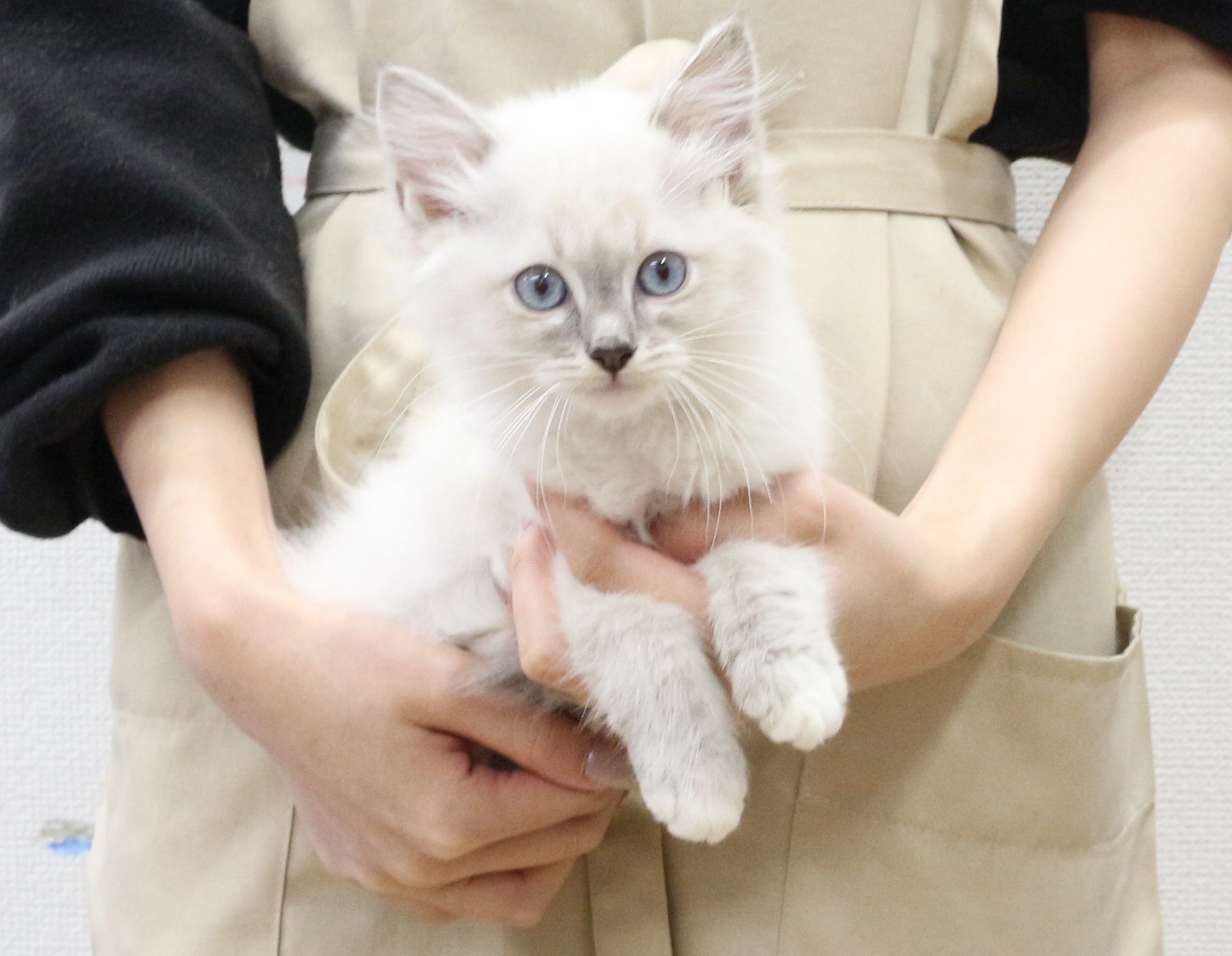 澄んだブルーポイントに、やさしい“ミテッド”の白が映える✨ 穏やかな甘えん坊、ラグドールちゃん