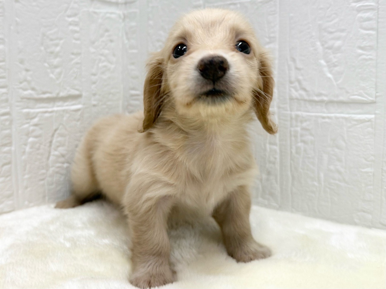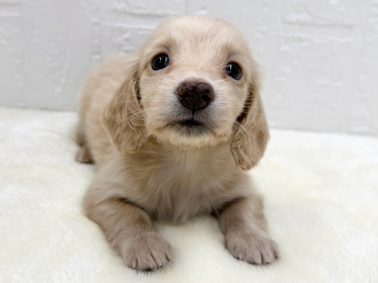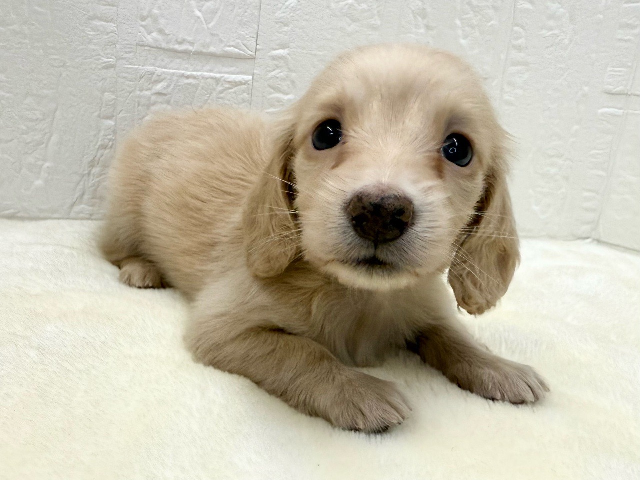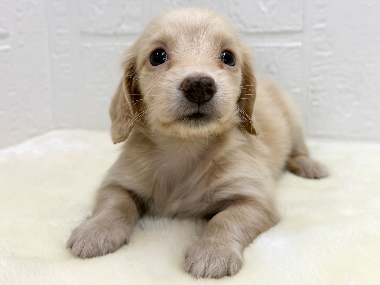 つぶらな瞳でこちらを見つめる表情がとっても愛らしい、ミニチュアダックスの女の子です❤️