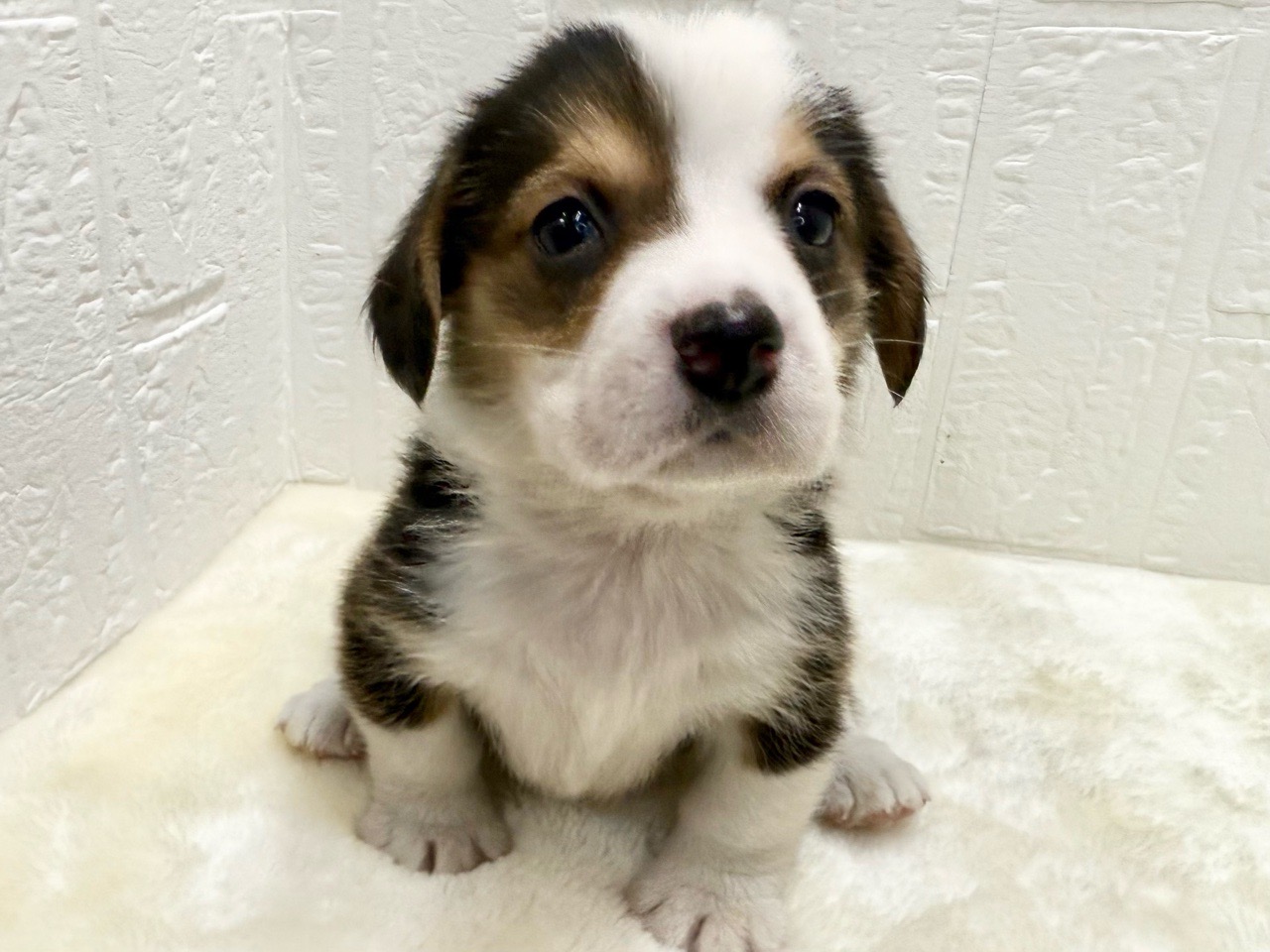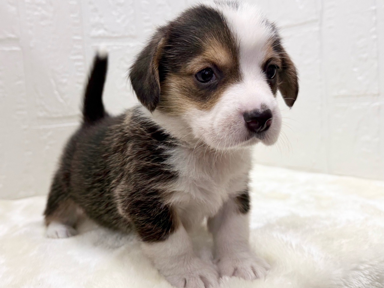 コーギーらしい短めあんよに、ビーグルの表情がほどよく合わさった