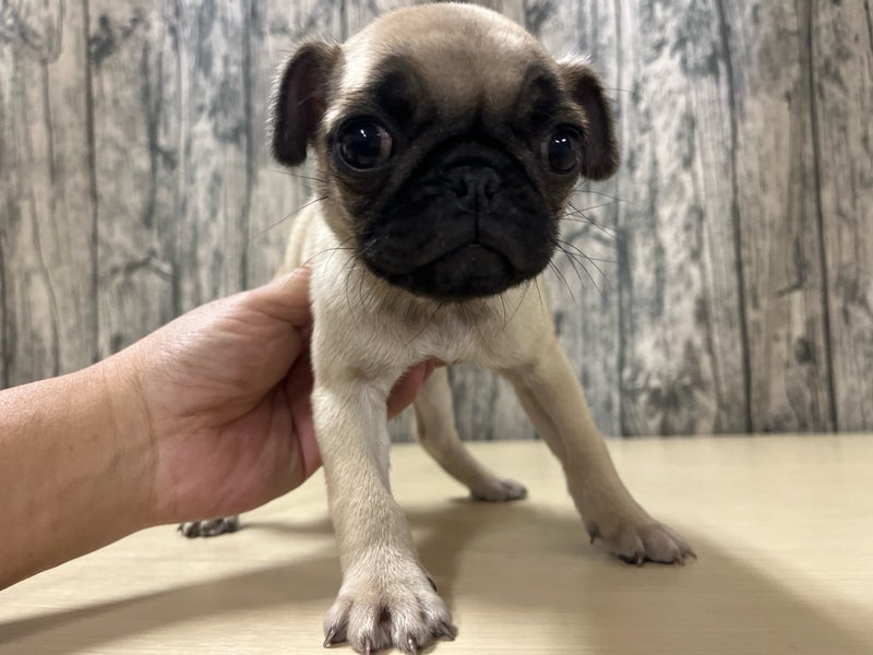 フォーンカラーが優しく温かい印象のパグの女の子です。