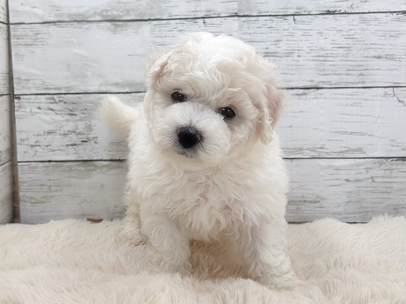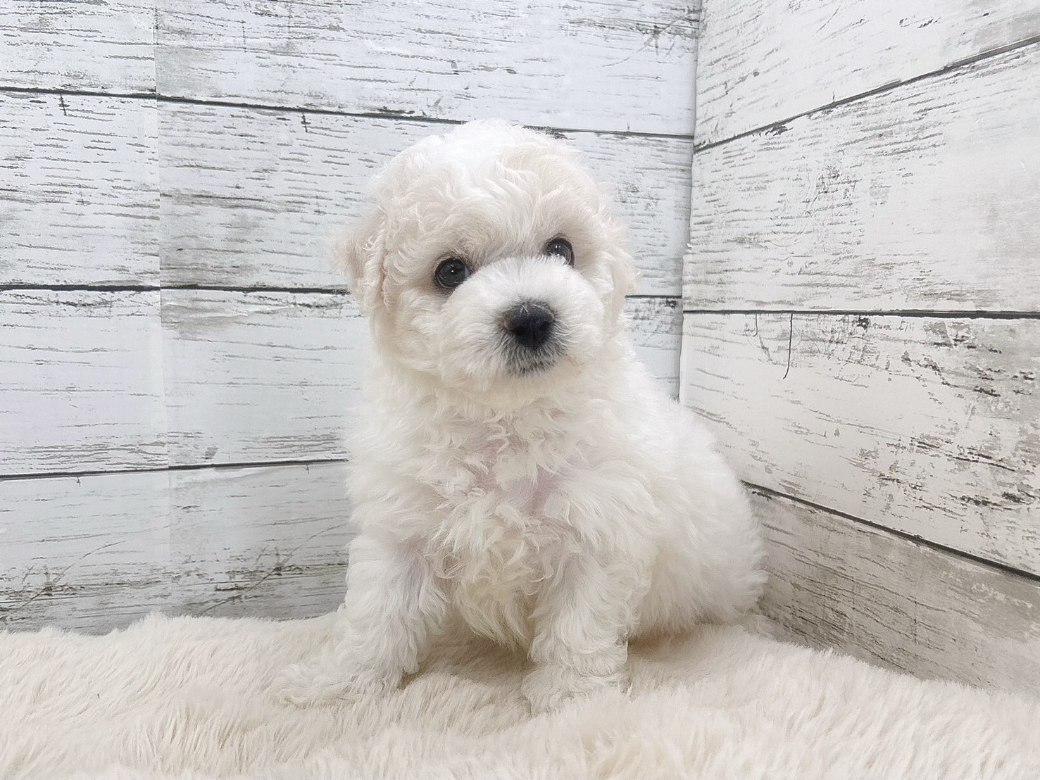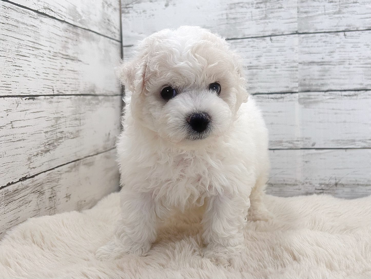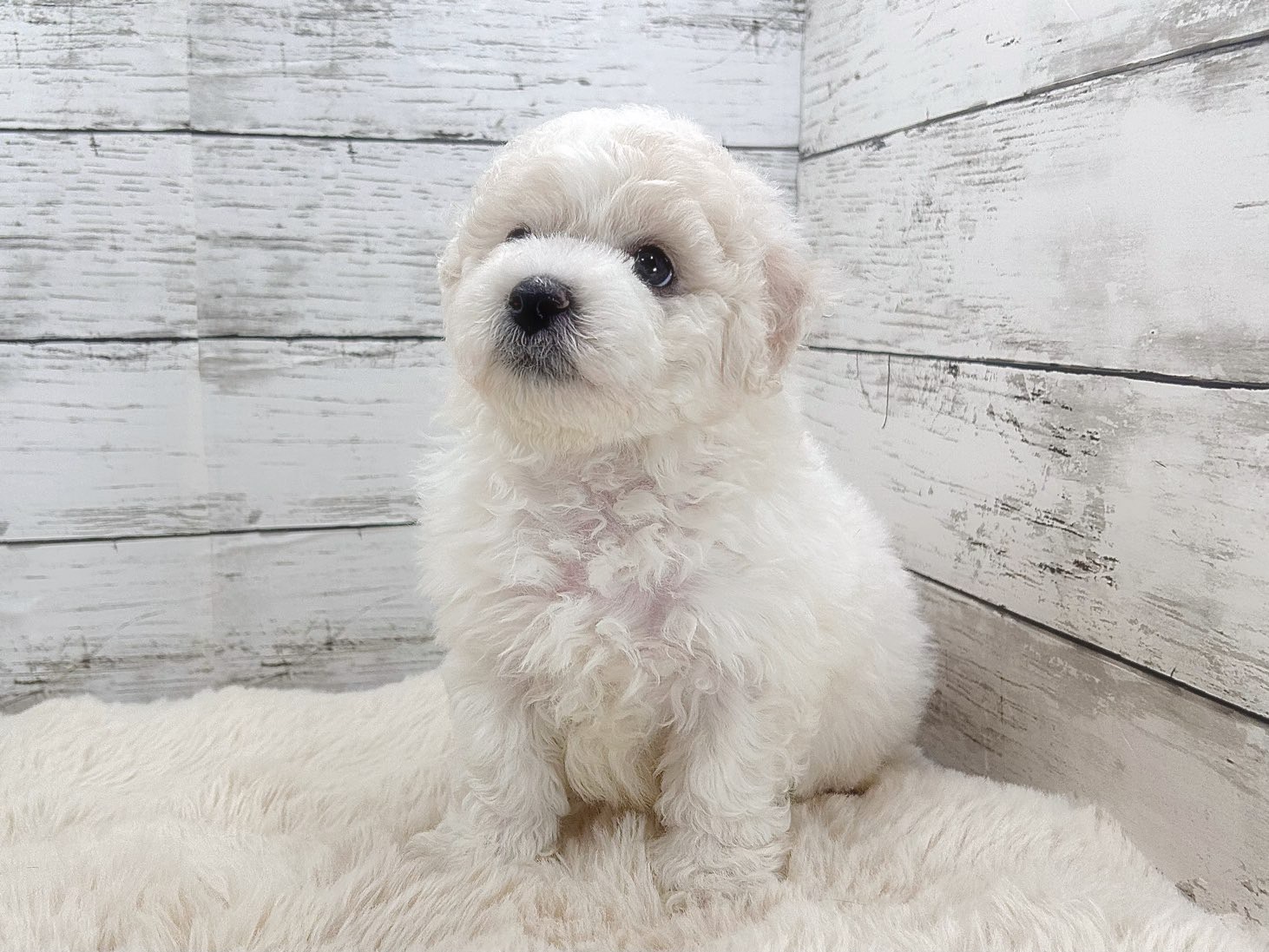 真っ白でやわらかな被毛が魅力のビションフリーゼの男の子が、ペットトライアル魚沼に仲間入りしました。