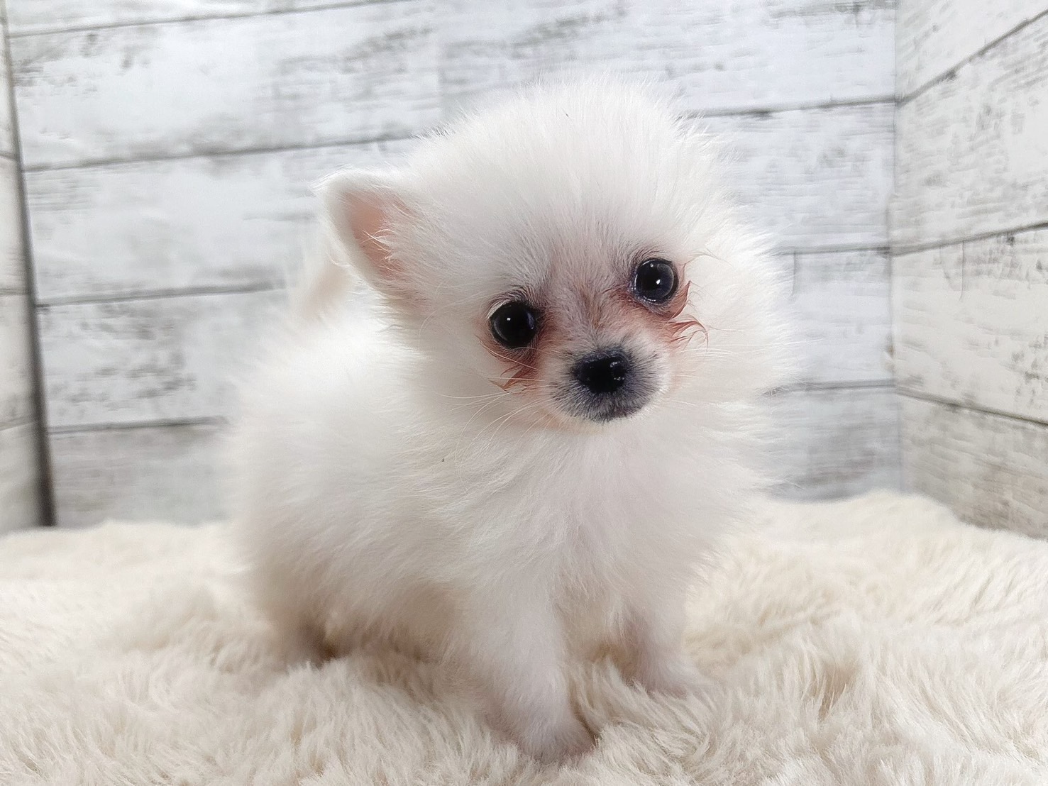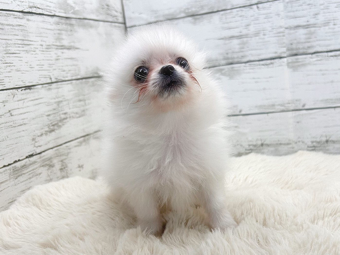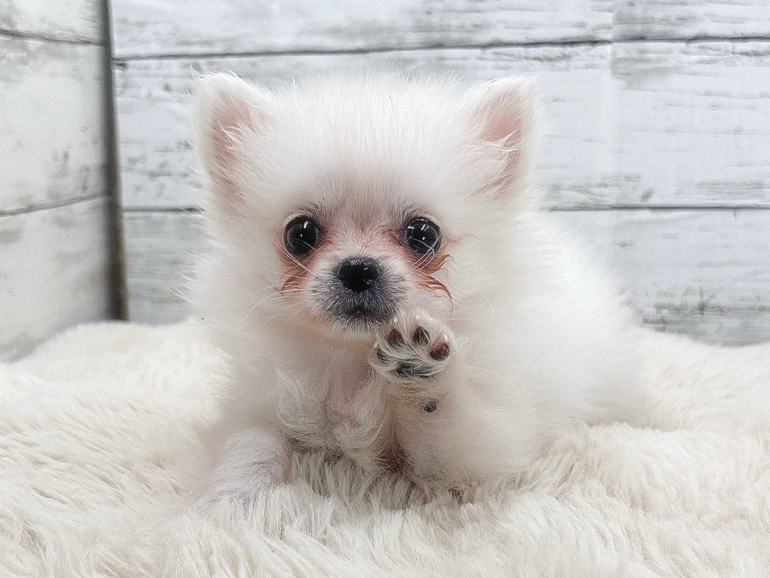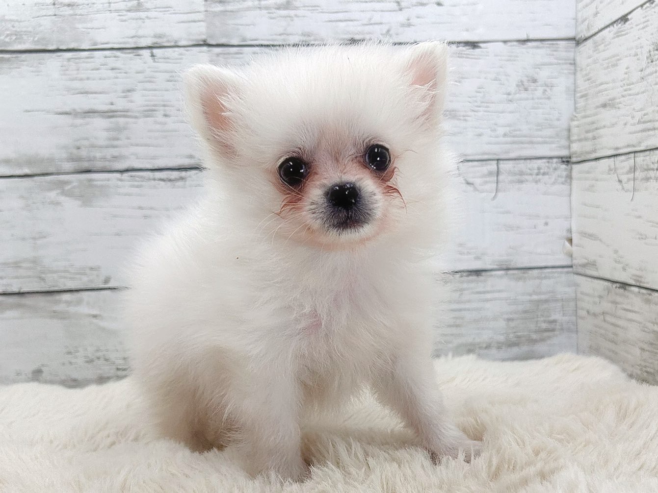 ふわふわの被毛と、ちょこんとした立ち姿が目を引く、ポメラニアン×チワワの男の子です。