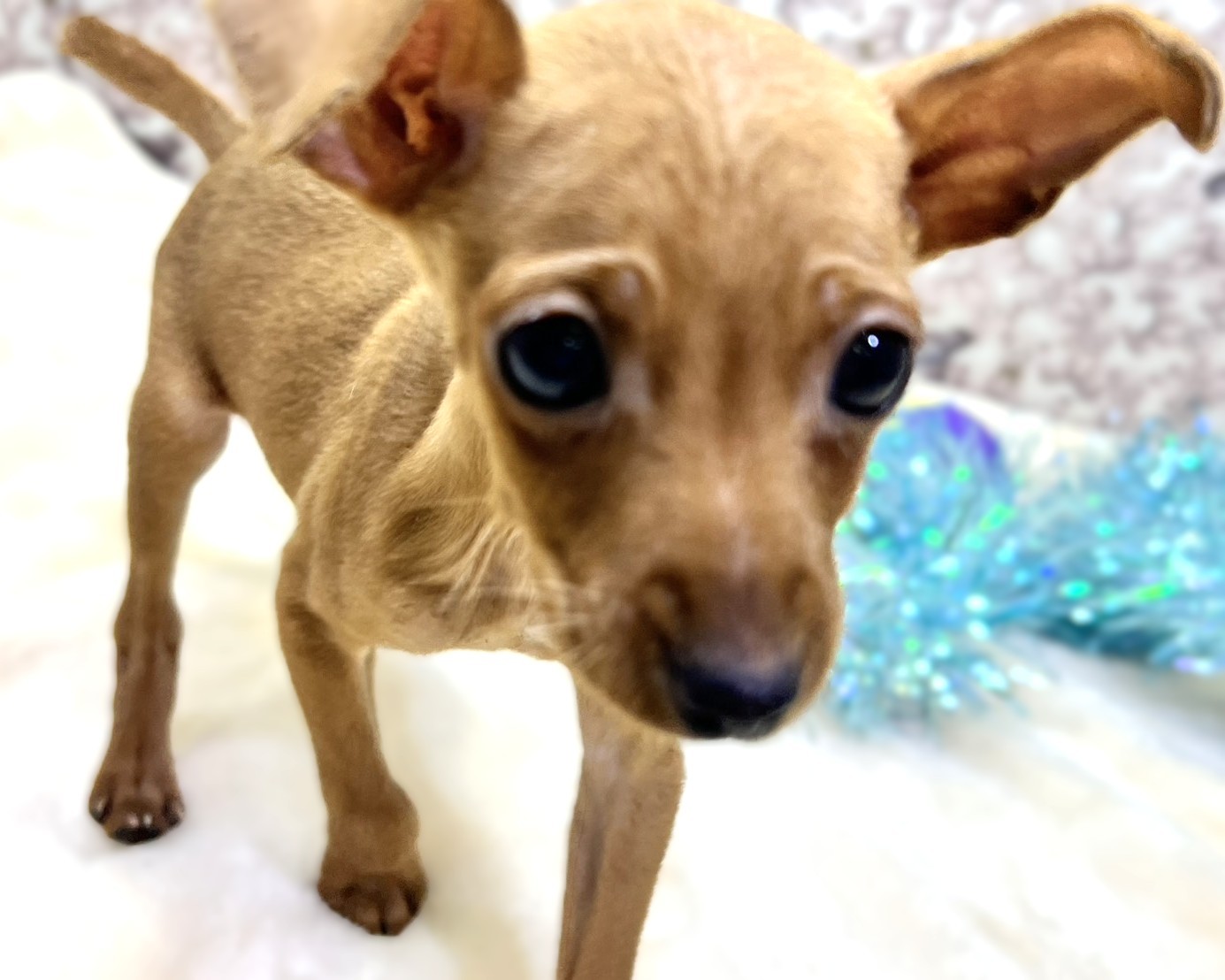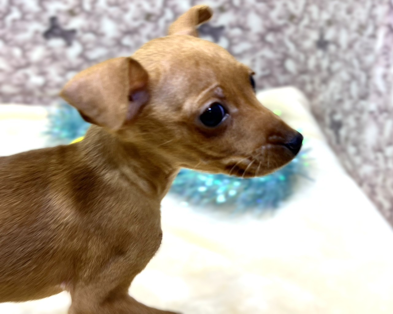 つぶらで大きな瞳が印象的な、ミニチュア・ピンシャーの男の子です♥