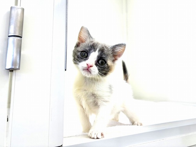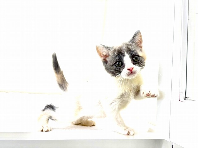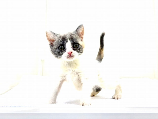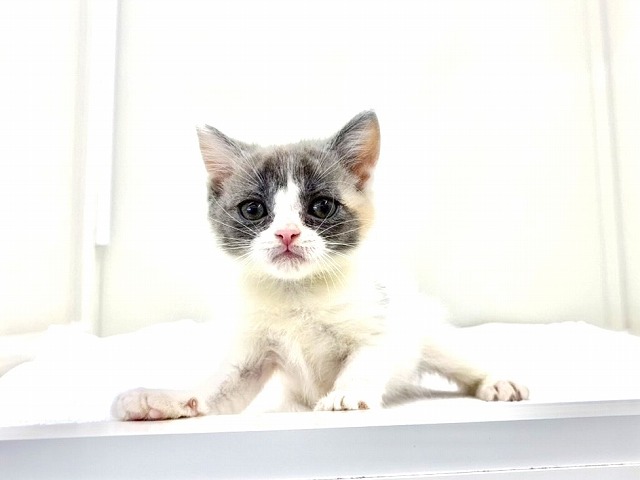 淡い三毛猫カラーのハチワレ模様がとってもキュートで、見れば見るほど惹き込まれてしまう可愛さです(〃艸〃)