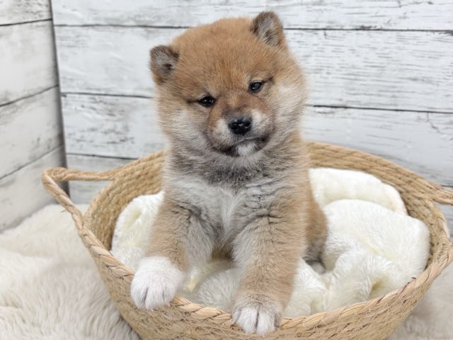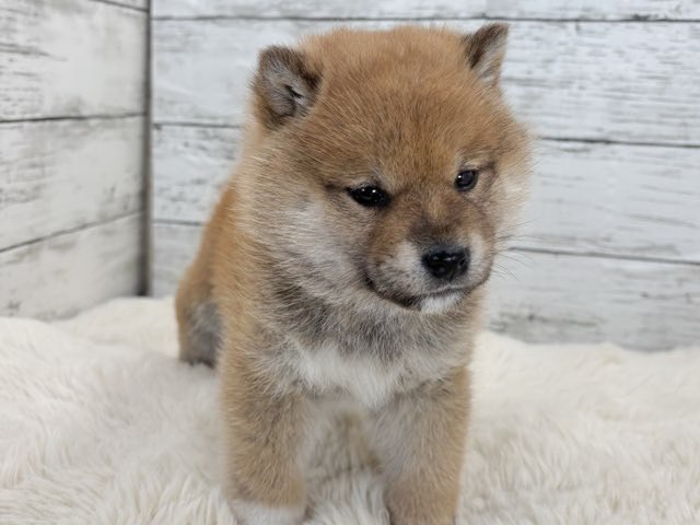写真の通り、ちょこんと座っているだけで癒し力満点の柴犬(赤)の女の子です✨