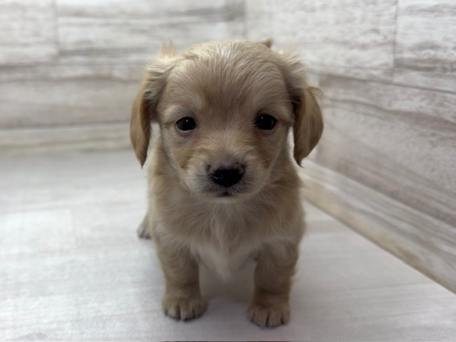 ちっちゃな体にぎゅっと詰まった個性が魅力の MIX ♂(チワワ×ミニチュアダックス)。クリーム色の毛並みは柔らかく、ふんわりとした印象で、見ているだけで気持ちが和みます。チワワのすっきりしたフォルムとミニチュアダックスのちょっぴり長めのシルエットが絶妙にミックスされた姿は、唯一無二の可愛らしさです。小柄でもバランスの良い体つきなので、抱っこしても安定感があり、日々のふれあいが自然と増えます。短い足で元気に歩く姿や、首をかしげる仕草…どれも家族の笑顔を引き出すキュートな瞬間です。多様な生活スタイルに寄り添えるコンパクトなサイズ感で、室内でも無理なく暮らせるのも魅力。見るたびに新しい魅力を発見できる、この子との毎日は、きっと特別な時間になるはずです。ぜひこの小さな相棒を迎えて、日々の暮らしにたっぷりの愛らしさをプラスしてください。