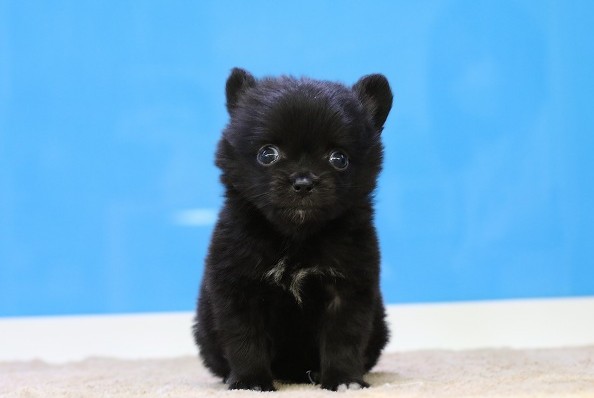 ポメラニアン×チワワのポメチワちゃん。つやっとしたブラックの被毛に、まんまるおめめが映える可愛さで、写真でも「ちいさっ!」が伝わる存在感です。現在330gの超極小サイズで、将来も2kg~4kg目安のコンパクトボディ。お部屋のどこにいても目が届きやすく、初めてのわんちゃんにもお迎えしやすい子です♪♪