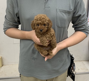 あたたかみのあるレッドカラーは、トイプードル特有のふんわりとしたカールがよく映え、