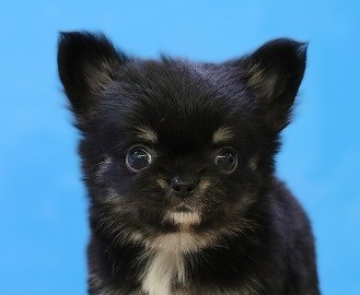 小さな体に、存在感は特大。つぶらなおめめでじっと見つめてくる、ブラック&タンのロングコートチワワちゃんです🐶