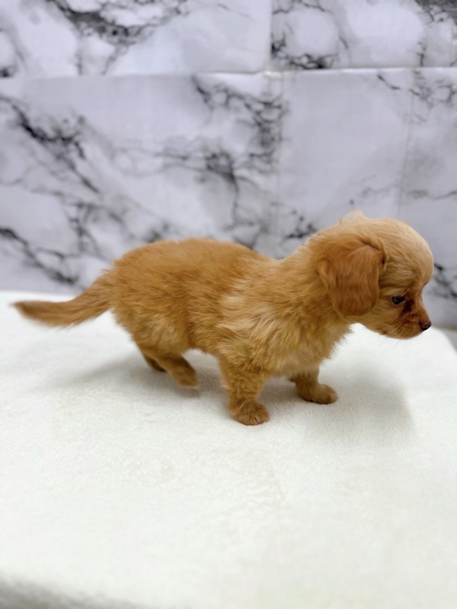 くりっとした大きなおめめと、ほんのり色素が薄めのお鼻が印象的な、チワワ×カニンヘンダックスのMIXの女の子です。