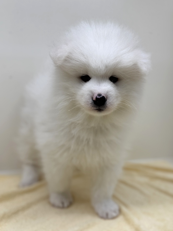 目を引くのは、思わず触れたくなるほど豊かな白い被毛と、くりっとした優しい表情✨
