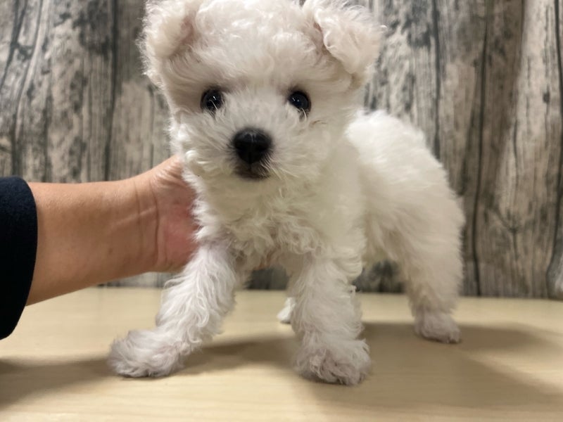 ふわふわのホワイトの毛色が魅力のビションフリーゼちゃん。