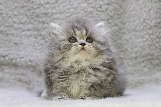 ✨もふっと丸いフォルムに、ブルータビー&ホワイトの上品カラー…見上げる瞳がたまらないスコくん🐱