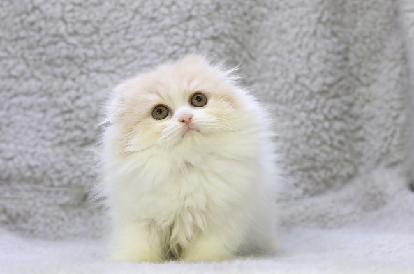 ✨ふわっとクリームタビー&ホワイト、見上げるまんまるおめめ…癒し力満点のスコちゃん🐱